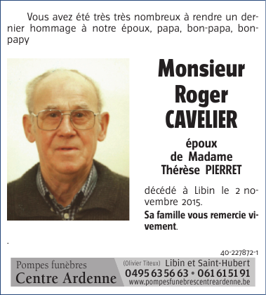 Décédé à Libin (6890) le lundi 2 novembre 2015 à l'âge de 89 ans