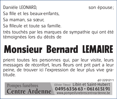 Décédé à Arlon (6700) le dimanche 25 octobre 2015 à l'âge de 58 ans