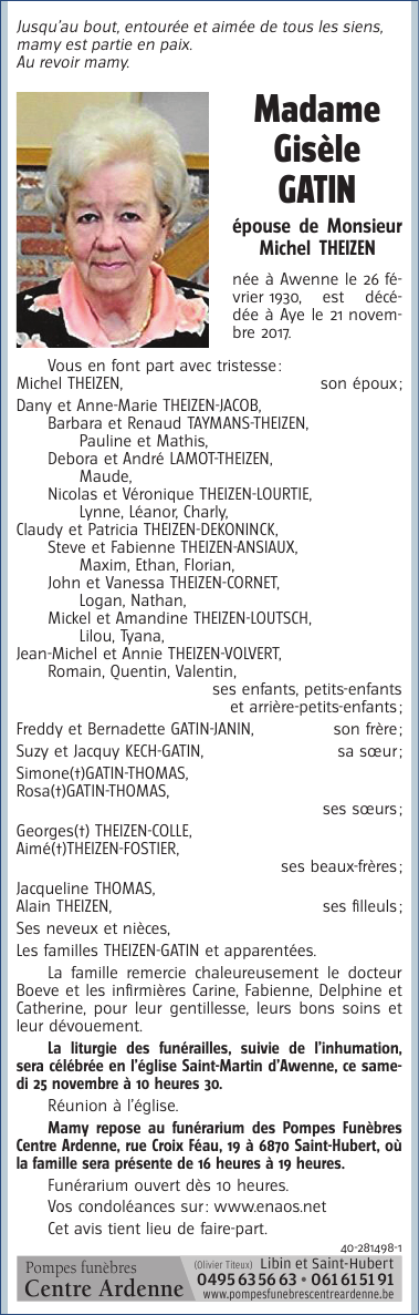 Madame Gisèle GATIN épouse de Monsieur Michel THEIZEN