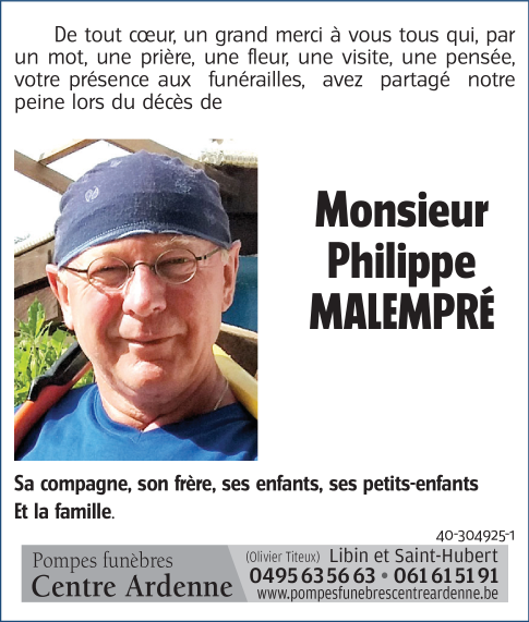 Décédé à Villance (6890) le jeudi 1 novembre 2018 à l'âge de 64 ans