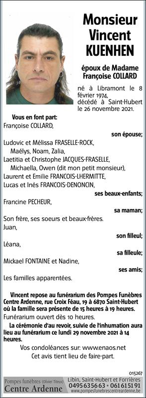 Décédé à Saint-Hubert (6870) le vendredi 26 novembre 2021 à l'âge de 47 ans