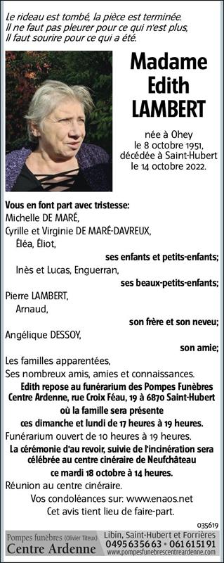 Décédée à Saint-Hubert (6870) le vendredi 14 octobre 2022 à l'âge de 71 ans