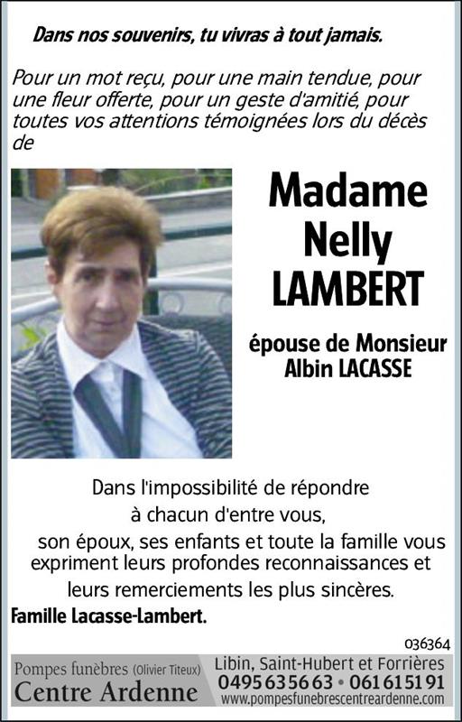 Décédée à Saint-Hubert (6870) le samedi 15 octobre 2022 à l'âge de 80 ans