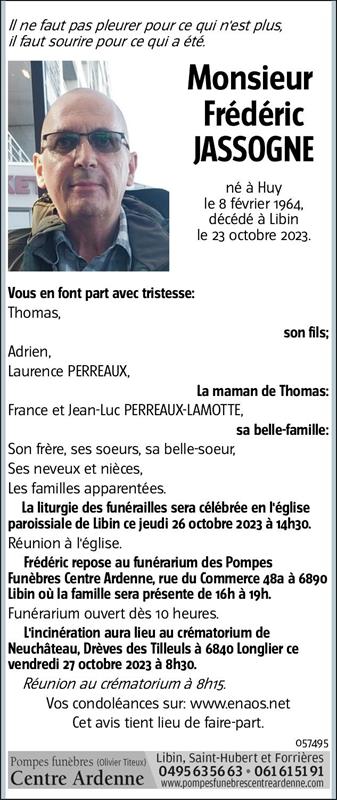 Décédé à Libin (6890) le lundi 23 octobre 2023 à l'âge de 59 ans