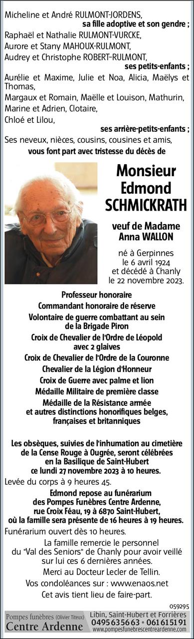 Décédé à Chanly (6921) le mercredi 22 novembre 2023 à l'âge de 99 ans