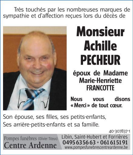 Monsieur Achille PECHEUR époux de Madame Marie-Henriette FRANCOTTE