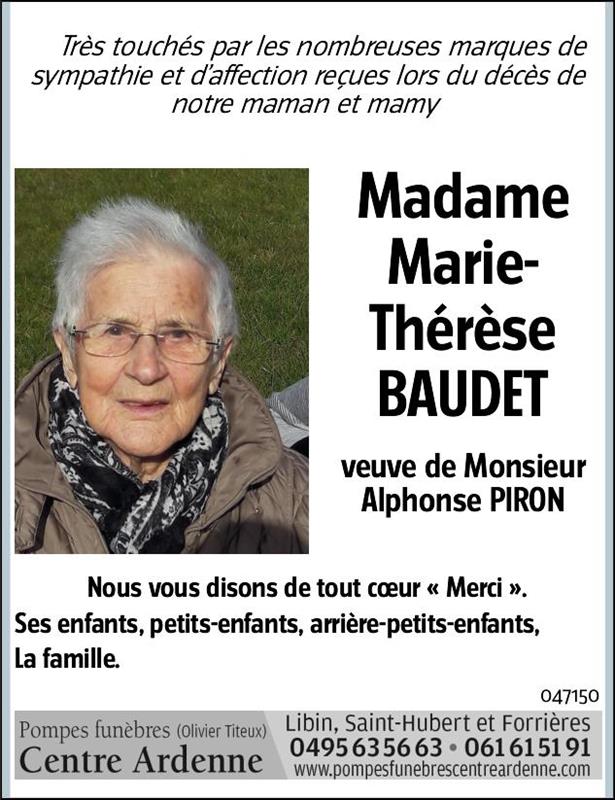 Née à Jehonville (6880) le samedi 16 juillet 1927