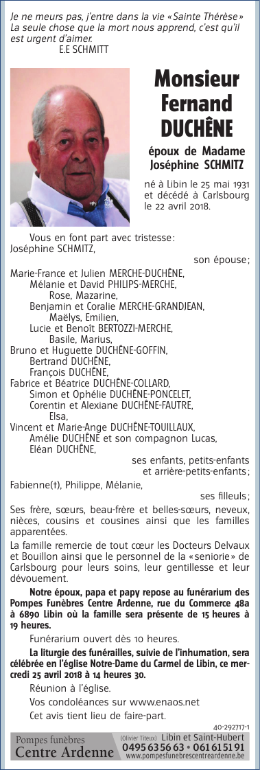 Né à Libin (6890) le lundi 25 mai 1931
