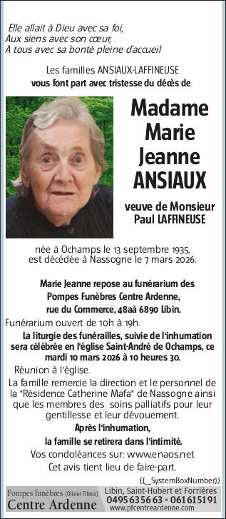 Madame Marie Jeanne ANSIAUX