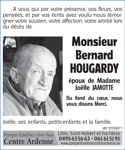 Décédé à Opont (6852) le jeudi 14 février 2019 à l'âge de 75 ans