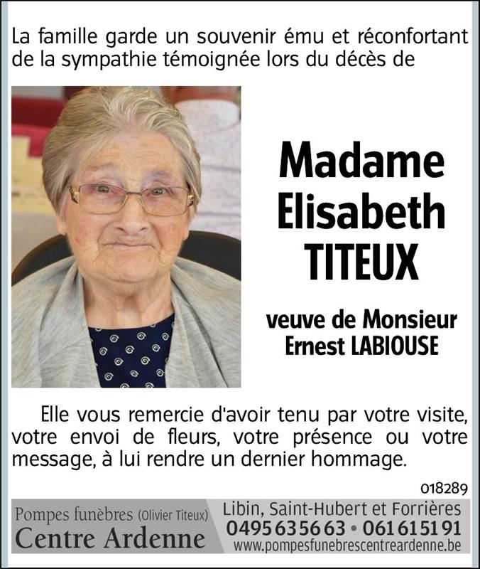 Décédée à Saint-Hubert (6870) le mardi 14 décembre 2021 à l'âge de 91 ans